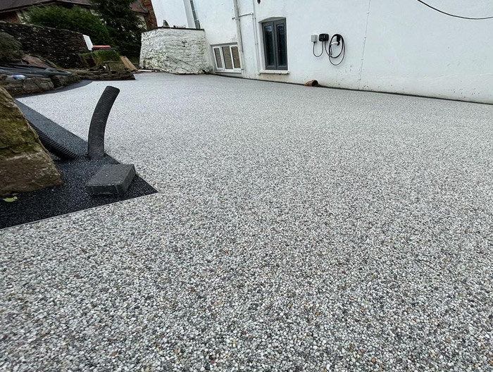 So why choose a resinbond aggregate driveway or patio? Resinbonded solutions are an appealing choice for many reasons. Firstly, resinbond provides easy maintenance, easy cleaning, and slip resistant, making it a reliable long-term option, regardless of weather. Additionally, we can install and design many visually appealing patterns to bring life to your driveway or patio.
